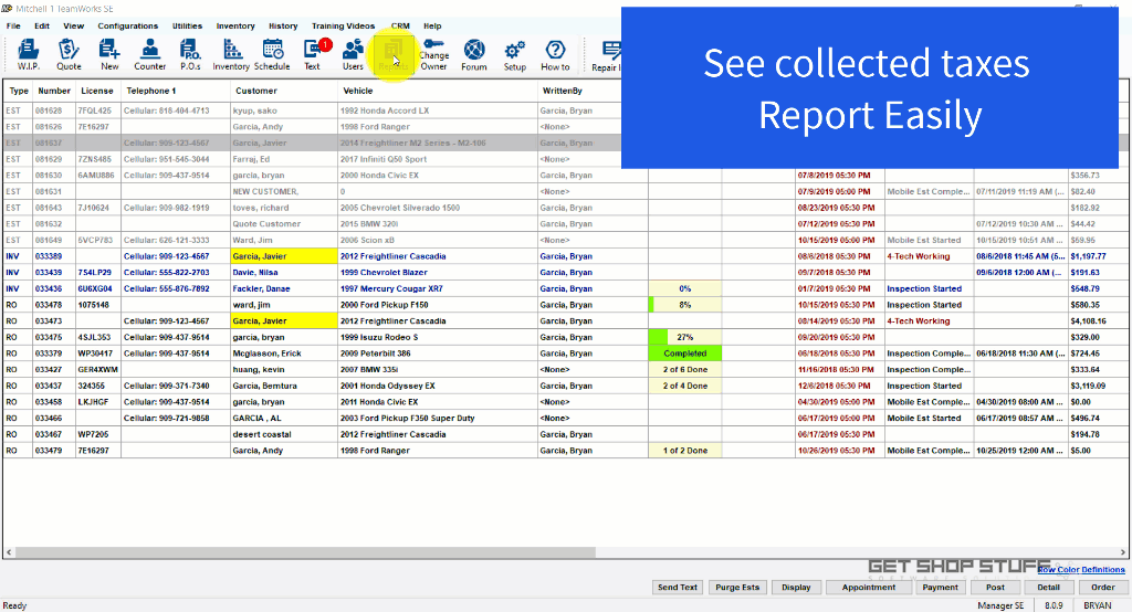 See all of your Work In Progress on one screen. Easily search and find the vehicle you’re looking for. Quoted a job a few weeks ago and now the customer is here and wants to get it done, use the W.I.P to find the estimate by vehicle or customer name.