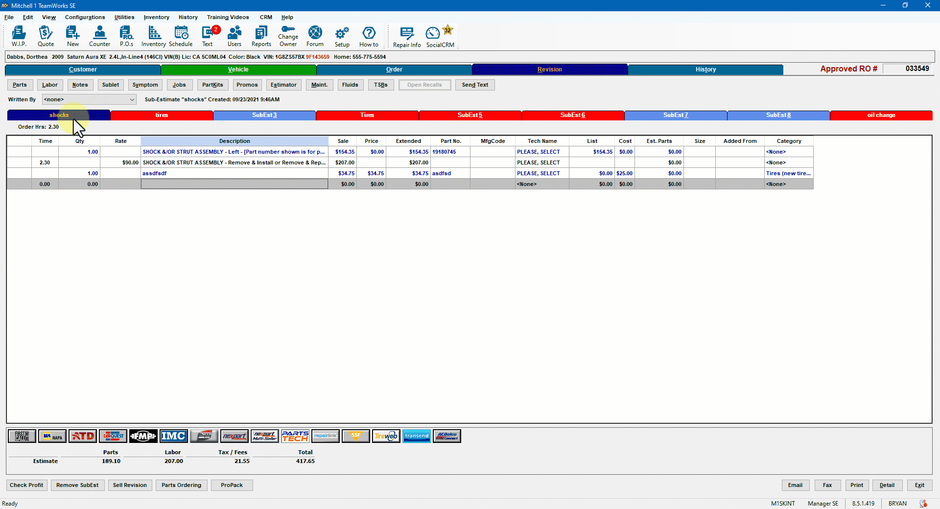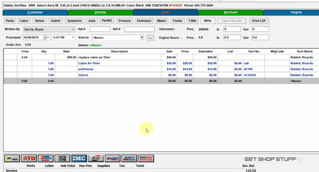 Easily transfer parts from your parts suppliers to your work order. Shops are making quotes in half the time if not faster. The system will automatically add the part#, description, and cost.