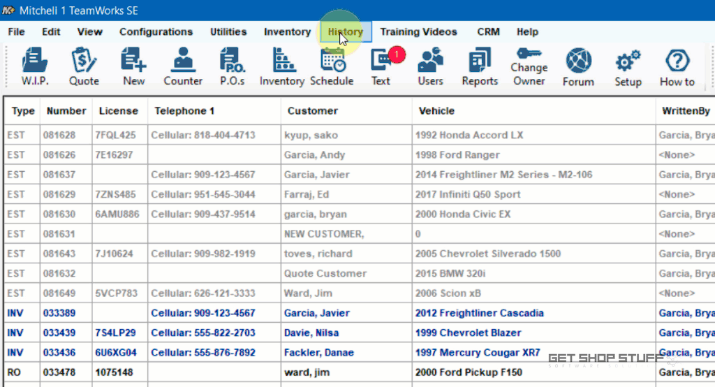 A complete customer history is saved on every vehicle and customer who visits your shop. You can then later use this info to keep track for warranty, marketing, and lost sales from declined work.